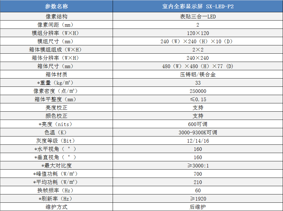 P2室內小間距高清全彩LED顯示屏技術參數: