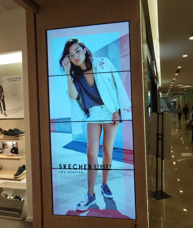 下面這個1*4的豎屏拼接屏是由上海素希為斯凱奇某門店做的拼接屏宣傳方案: