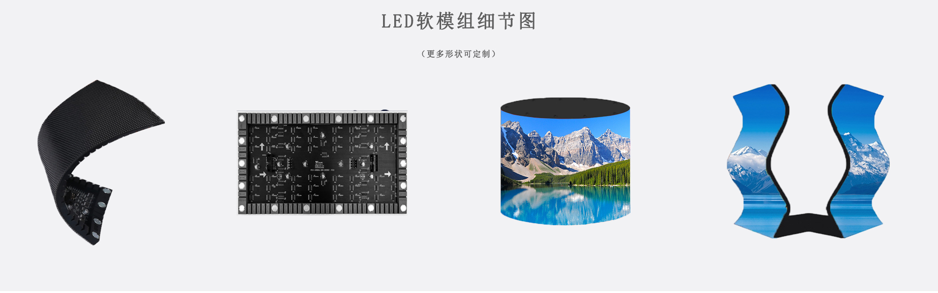 LED無縫拼接軟屏也稱作柔性LED顯示屏,軟模組、柔韌好、任意可彎曲,安裝可以是任意曲面,適合藝術造型;采用特殊材料和先進技術,超薄超輕,單個模組的厚度僅8mm,不僅輕薄,可塑性強,該系列LED軟模組屬于異形LED大屏,采用可彎曲pcb和硅膠底殼套件,柔韌性強,可彎曲弧度最高120°低電流,低熱量,高對比度,高亮高灰,刷新1920Hz,真16bit灰度等級,搭配SMD1515純黑燈,黑屏整屏暮色完全一致,像素吻合1920*1152/3840*2304,2K/4K分辨率,播放高清視頻,達到最完美播放效果。(適用于圓柱屏、波浪屏、環形屏、球型屏、彩帶屏弧形屏等顯示場合)